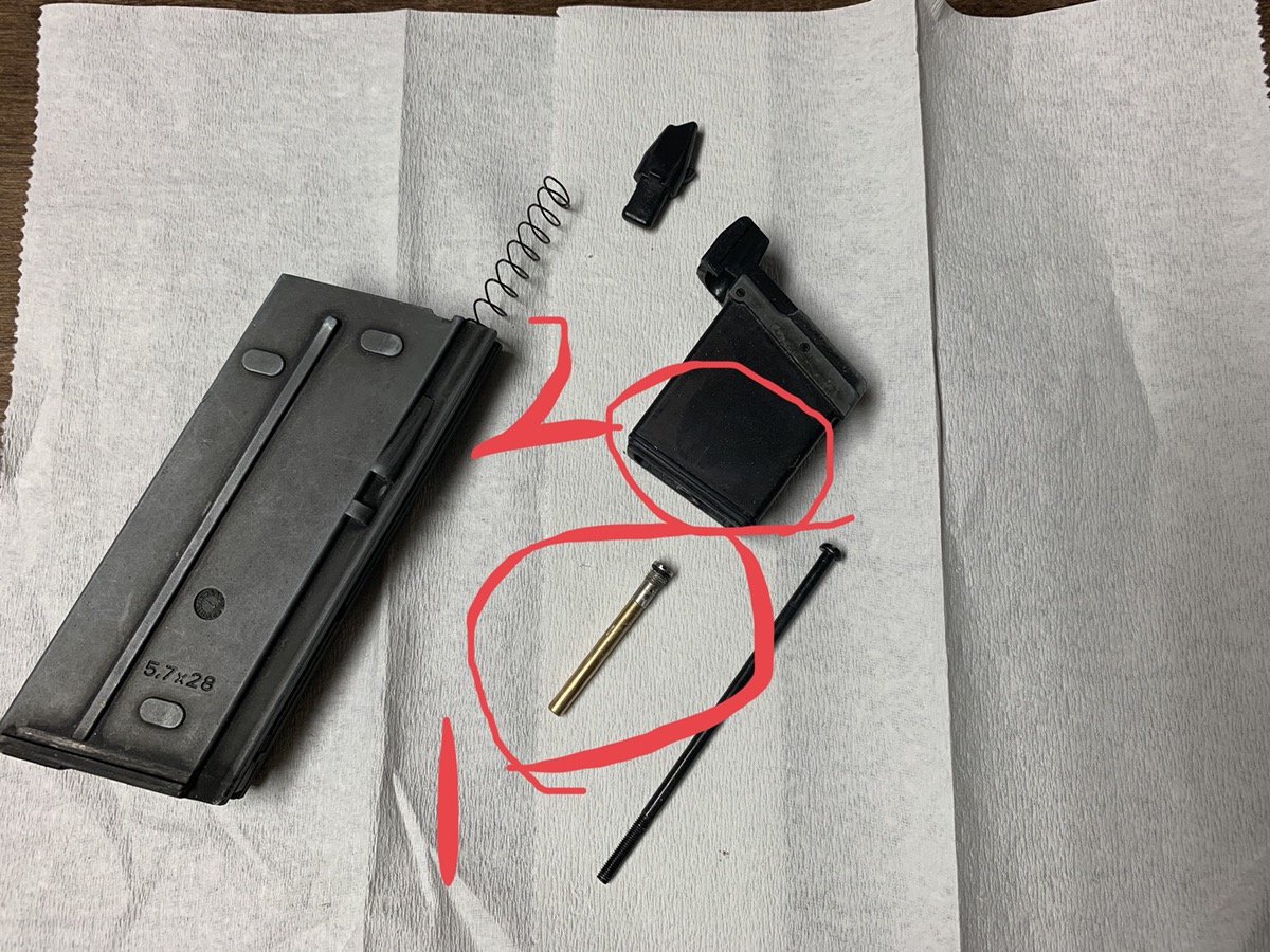 ※今回は東京マルイ製「FN5-7」のマガジンを分解している為、