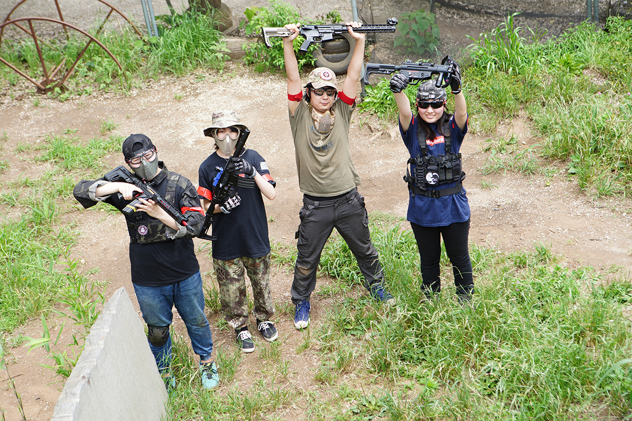 外フィールドが初めて・サバゲー経験の少ないスタッフもいたので、ダッシュあり、フルオートあり、長距離戦ありと、普段とは全く違うルールに新鮮さを感じた人も!最初は緊張している様子でしたが、最後には「サバゲー楽しい!!」と笑顔だったのが印象的でした!
