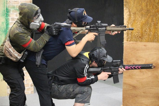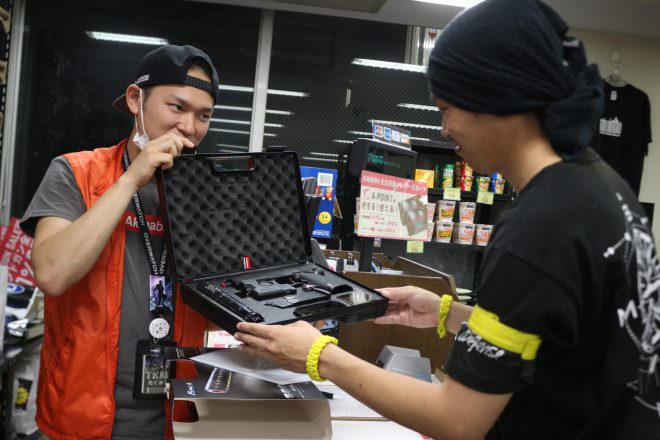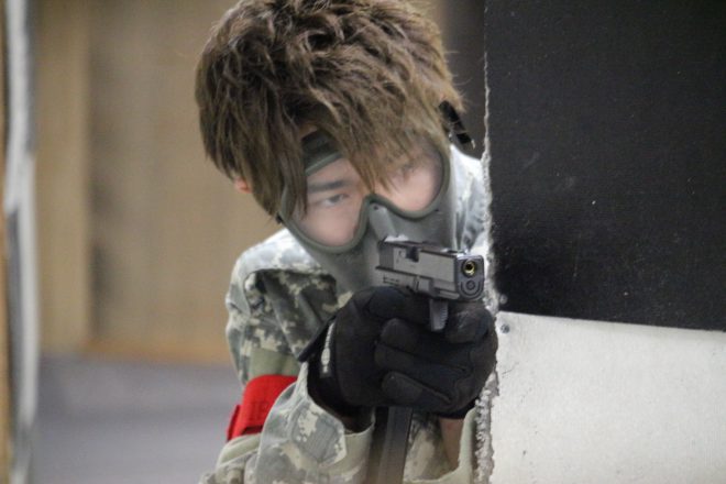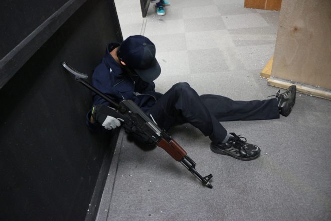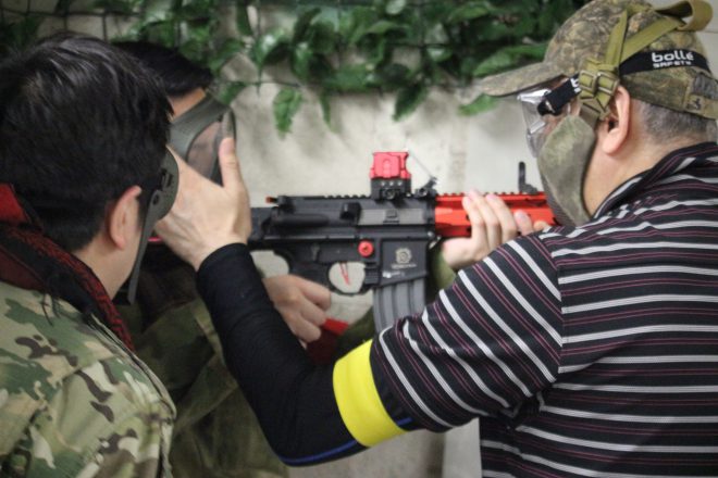 初心者さんとは思えない銃の構えと眼つきにスタッフ一同驚愕…