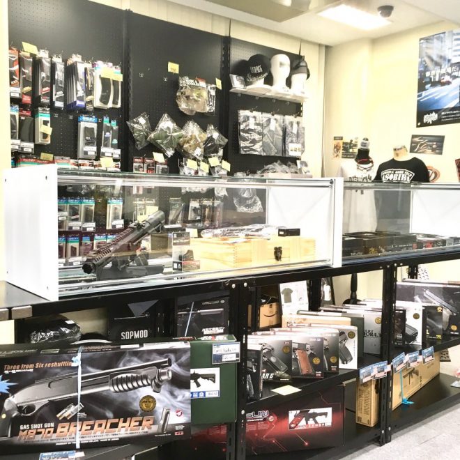 オシャレなエアガンショップって感じがしてこれまた興奮しますね……