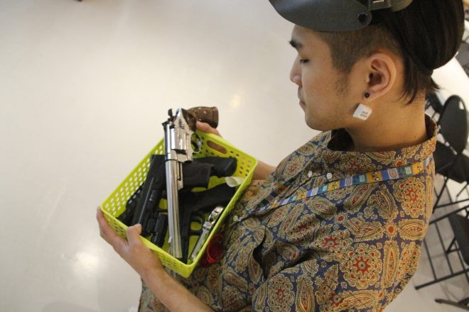 ②その武器を中身の見えない袋に詰める(真っ黒なポリ袋がオススメ)