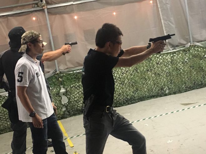 構え方やハンドガンのドローの方法などを個別で指導していただきました。