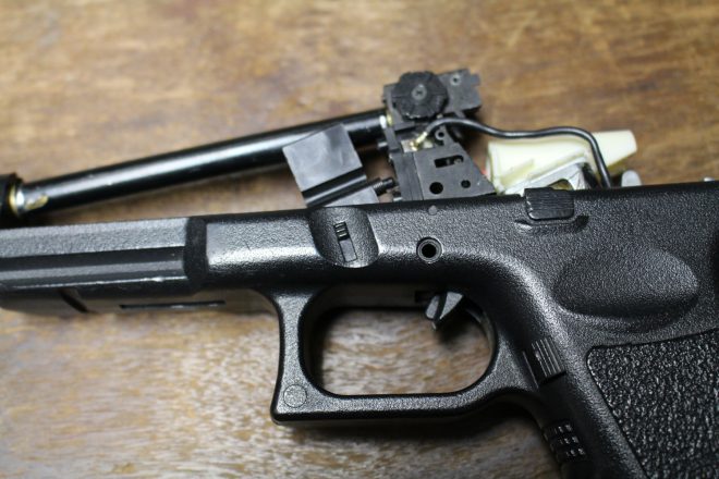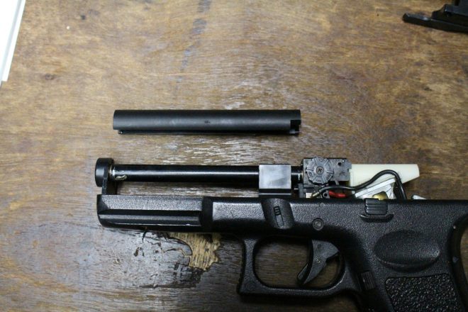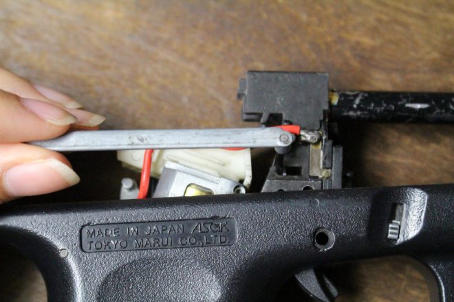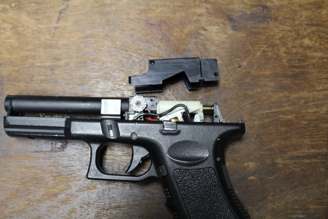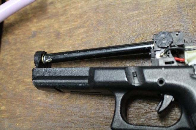 ネジを外しインナーバレルやトリガーが付いたものを外します(配線に気を付けましょう!)