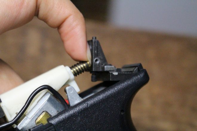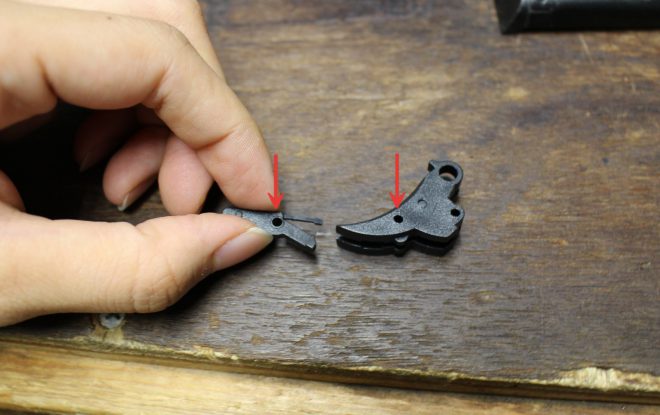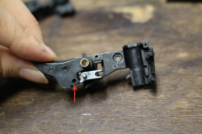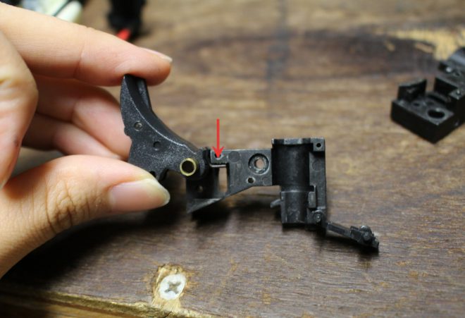 こんな小さな切り込みで安全装置(トリガー)が壊れてしまうんですね…