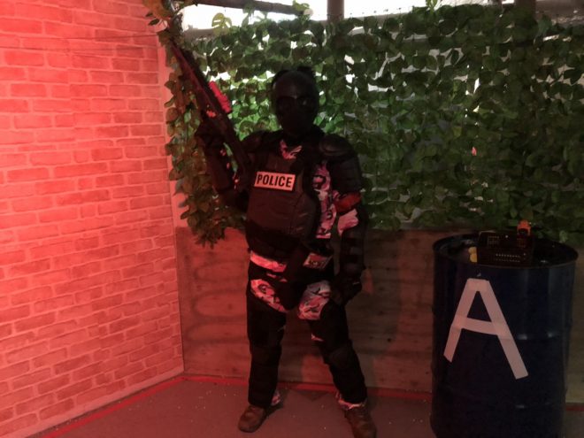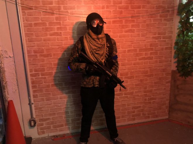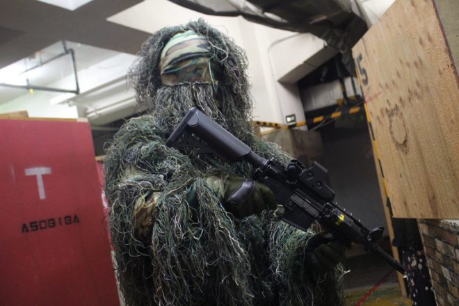 ※ゴーグル、マスクを外した状態のフィールド内でのお写真は、銃を安全な状態にした上で撮影を行なっております。