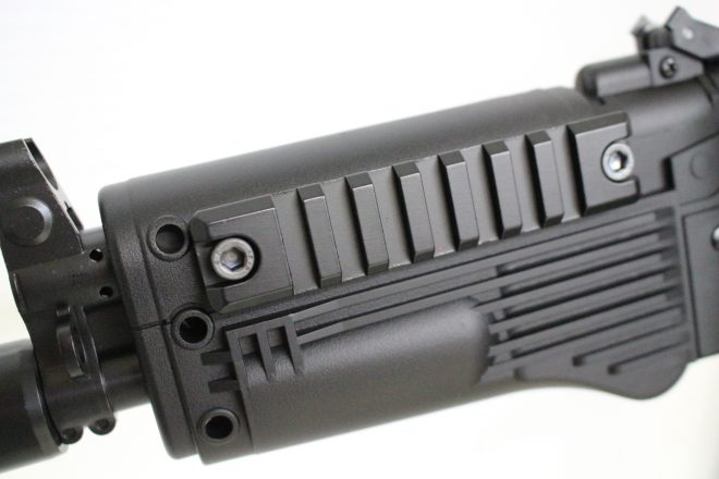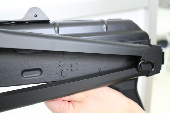 ストック部分は画像のように折り畳みが可能になっていて、20mmマウントレイルもついているのでオプションパーツを取り付けることが出来ます!