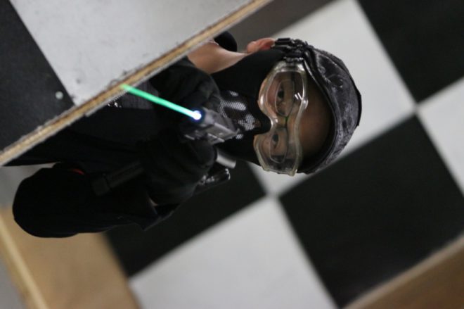 銃から発射されたBB弾がトレーサーを通過し、センサーで感知&光をフラッシュ!!!!