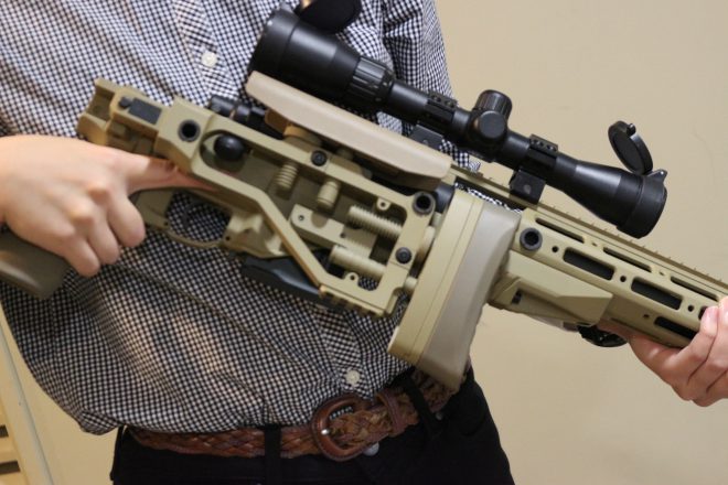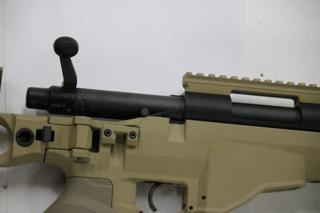 ストロークは写真の長さまであるのですが、引くときに筆者的には東京マルイのVSR-10よりも気持ち渋いかなと思う感じでした。