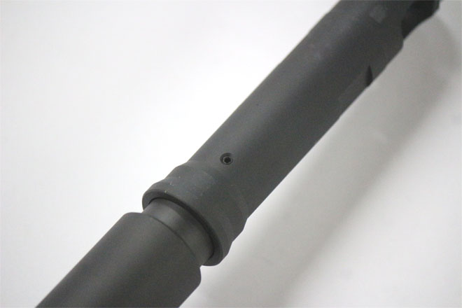 HOPUP調整は写真の上の方の穴から小さめの六角レンチを差し込んでバレルの調節ネジの所を回していくようになっています。