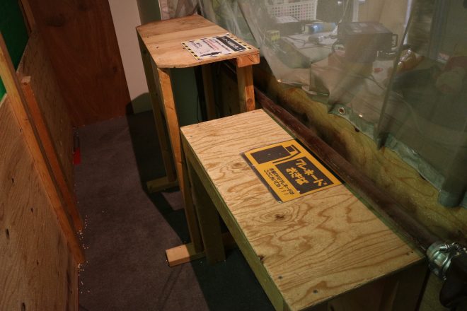 セーフティエリアで下準備をすると、暴発があったときにこめた愛情と共にBB弾をシラフのお客様にぶちまけて大惨事になりかねないので、準備はこちらのグレネード置き場でやってくださいね!
