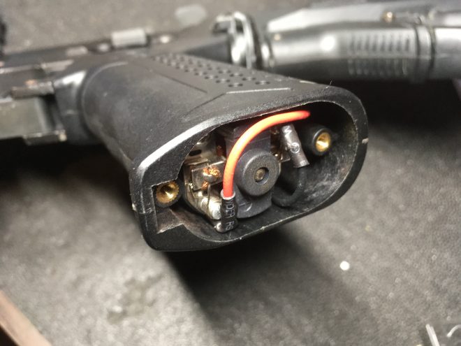 Lipoバッテリーを使用した際や、エアガン本体に無理な負荷がかかっている場合、ヒューズが耐え切ず焼き切れてしまっている場合があるので、切れているようだったらもうちょっと高めのアンペアのヒューズか、バッテリーの電圧が一回り小さいものを使用してあげよう!