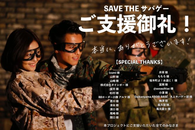 今後ともサバイバルゲームフィールドASOBIBAをよろしくお願いいたします。