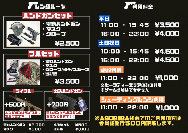 通常のレンタル品にプラス700円追加で、銃とマガジン2本と950円分のガスが付いてくる!