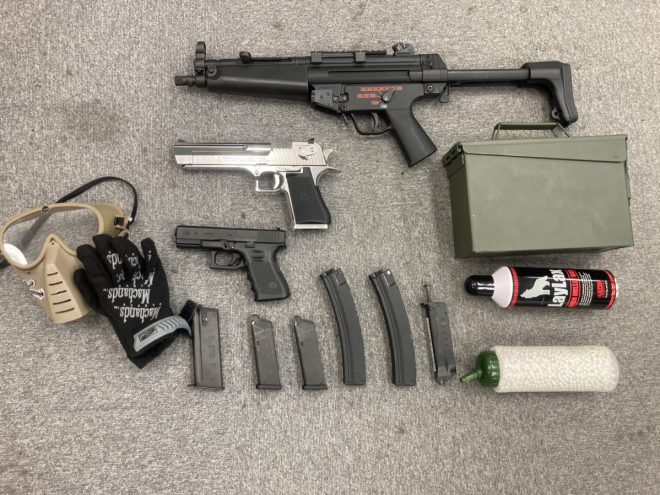 例えばハンドガンを2丁持って会社に行って、帰りにサバゲをしようとなると、会社に1kg以上の荷物を持って行くことになります。しかもサバゲをやるにはBB弾や動力源であるバッテリー&ガス、そしてマスクやゴーグルも持たないといけない……こうなると、かなり荷物がかさばります。