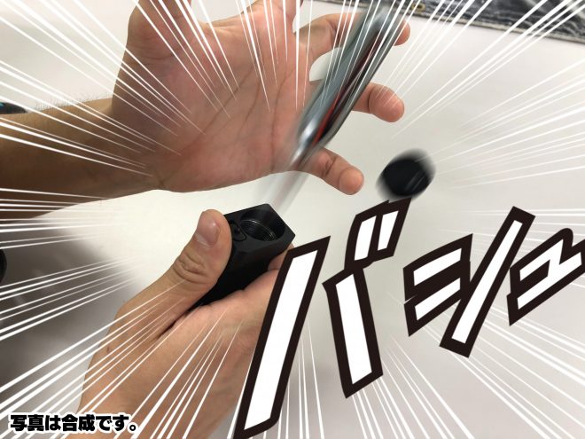 このサイズでBB弾を撃ち出せる圧力です。ボンベが飛んだ場合、最悪周りの物や人に大きなダメージを与えてしまうため、必ず使い切ってからボンベ交換を行いましょう。
