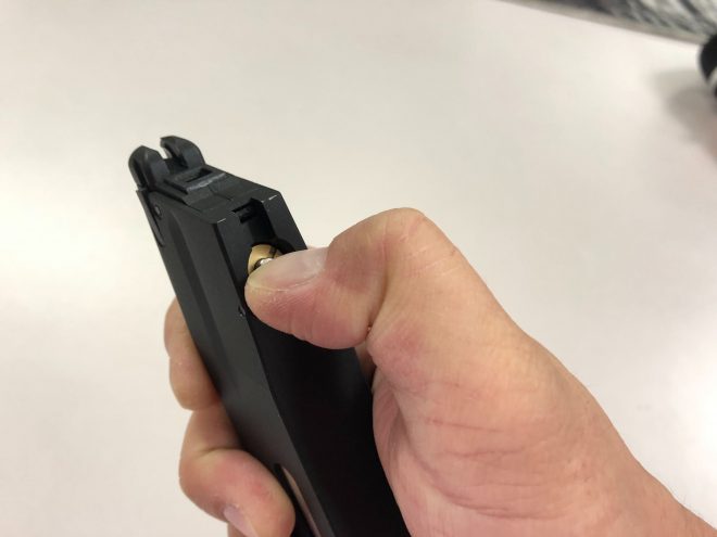 CO2ガスガンは、ガスの入ったボンベをマガジンに挿入する構造上、中に入ったガスを使い切ってからでないとボンベの交換ができません。