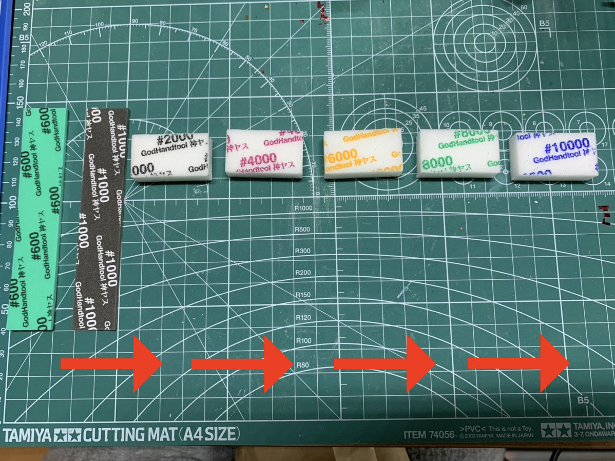 より綺麗にツルッツルに研磨していくためには順番に番手を上げていく必要があります!
