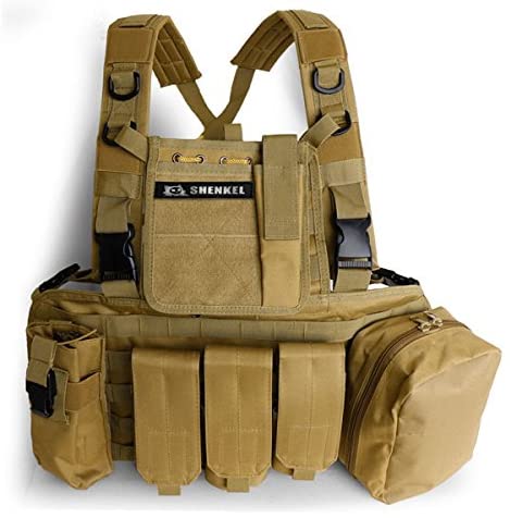 amazon:SHENKEL 軽量 2way ライトウェイト モジュラーベスト チェストリグ ポーチ4つ付 var.4 TAN タン vest-004tan