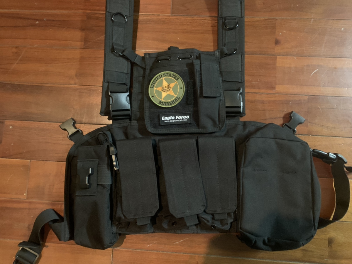 今回使用するチェストリグと同タイプの物です。とういかこれチェストリグって名前が付いてましたけど、ローデシリアンリーコンベストタイプですよねきっと。でも長いし、amazonの名前だとチェストリグ入ってるからチェストリグって呼びますね!