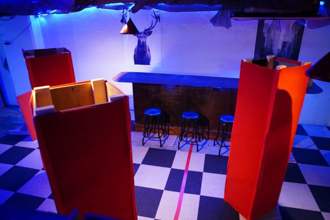 壁のお席にもマイ銃をかけられるようにしてあります!