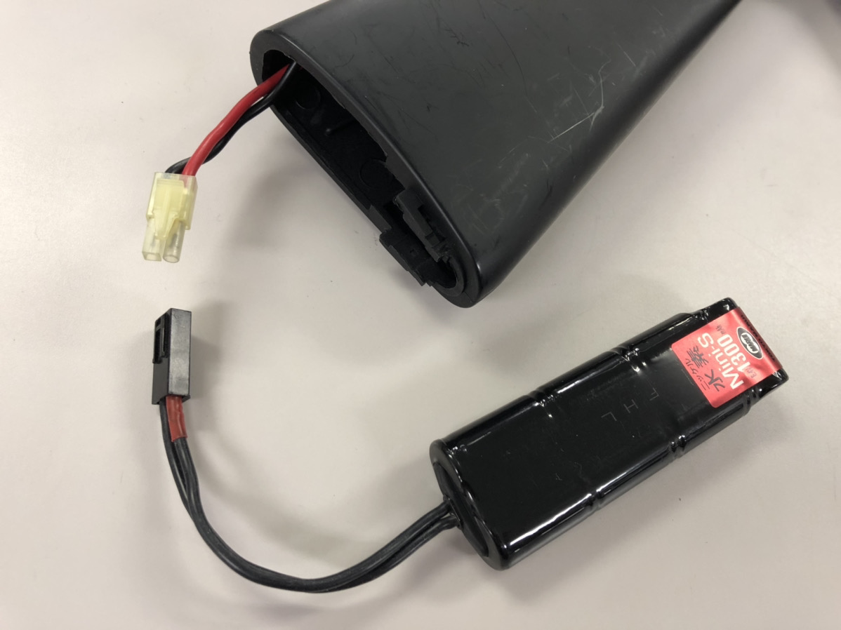 バッテリーが充電できたら、今度はバッテリーを銃につないで動作チェック。