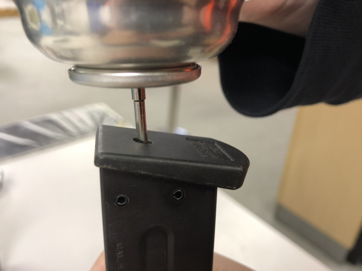 注入後は、マガジンの底面やバルブ付近に耳を近づけ、「シュー…」と漏れる音がしていないかを確認しましょう。