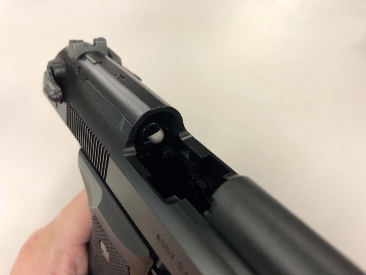 ガスブローバックガンのようにスライドやボルトが大きく動く銃の場合、動作した際にこぼれたBB弾や異物が挟まってしまうことがあります。