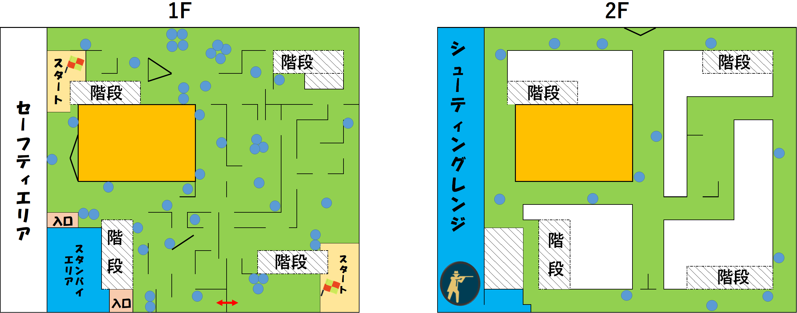 よりフィールドの入り組み度が大きくなったので、慣れるまで少し時間がかかるかもしれませんが、撃てる場所が増えているので、サバゲ―の経験が浅い人でもたくさんヒットを取るチャンスががあります!
