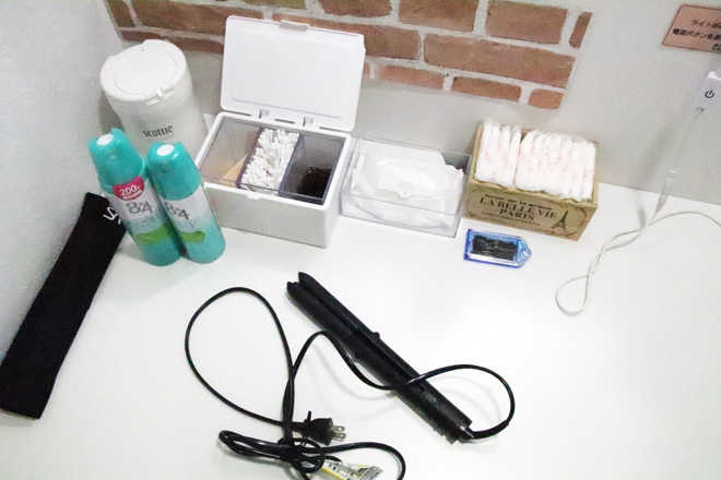池袋店の女子トイレにはヘアゴム、ヘアピン、さらにはヘアアイロンから生理用品までアメニティが充実しています(∩´∀`)∩ワーイ