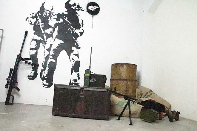 スタッフの私物や銃ではないものまで沢山飾ってあるので、スタッフに一声いただければお好きな銃を持ってお写真を撮って頂いて構いません!