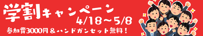 学生証の提示で参加費3000円&ハンドガンセットレンタル無料!
