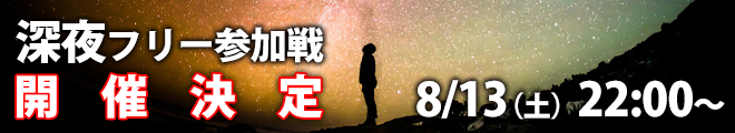 ※貸切営業とならなかった場合、開催日の2週間前よりフリー参加戦の予約受付を開始致します。