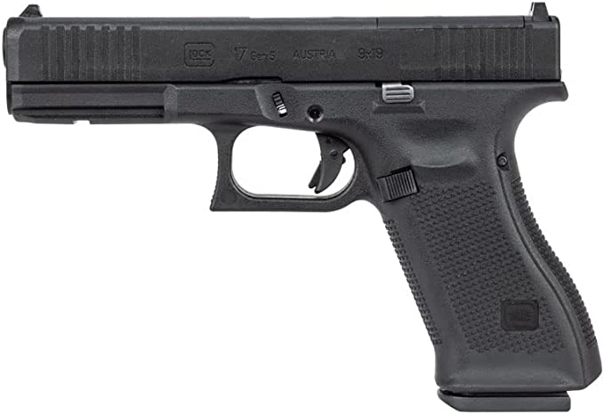 この形はどうみてもグロック!アンダーレールの溝が従来の1つから3つに変更がされていたり、グリップの形状に変更が加わったりとしています。スライド前方には、セレーションが入っているので、グロック17gen5がモデルになっているのでしょうか!しかもスライド上部には、光学機器を載せる用のマウントカバーっぽいのがあったので、MOSと呼ばれるバージョンが近そうですね。