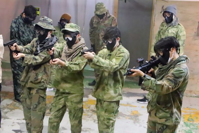銃の撃ち方、狙い方、ヒットコールの練習など皆さん真剣に取り組んでいます🔥