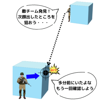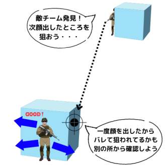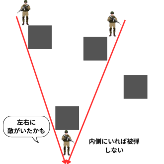 予測したところから自分がいるバリケードの角をポイントにして、頭の中で線を引きます。