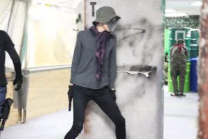 こちらの画像は初サバゲーの筆者ですが、バリケードにかなりくっついています。