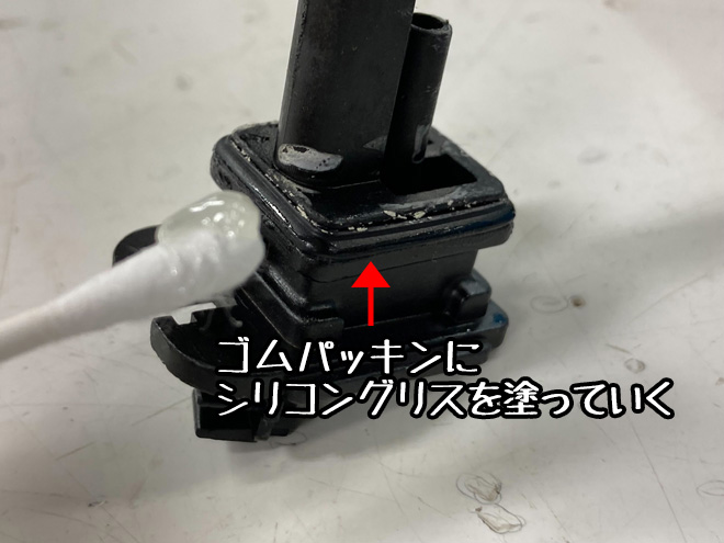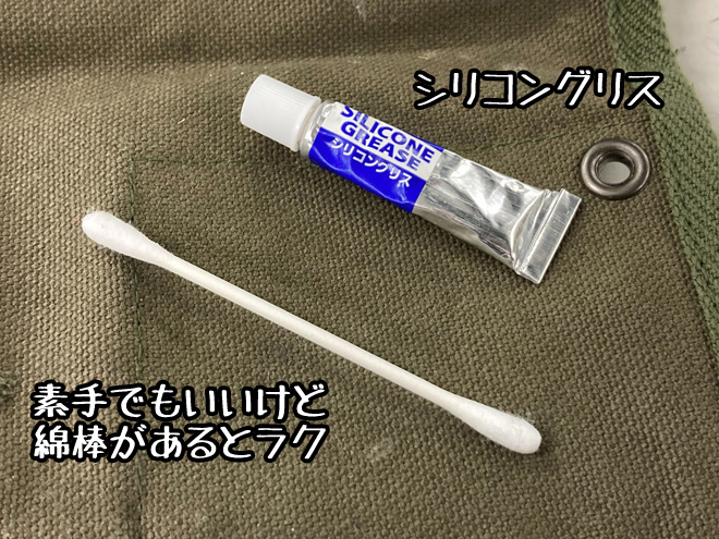用意するものはシリコングリスだけでOKですが、綿棒があると細かい隙間にも塗り込みやすくなります。