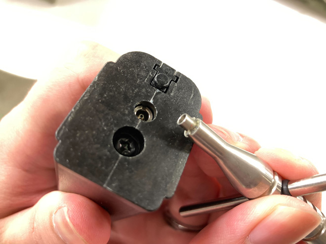この際、バルブを締めすぎないように気を付けましょう。マガジン側、バルブ側ともに柔らかい金属のため、締め込みすぎると簡単にネジ山をナメて再起不能になってしまいます。