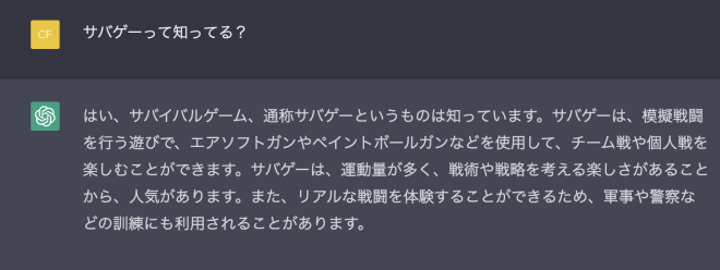 でも不安だからとりあえずサバゲーを知ってるか聞いてみようかな。