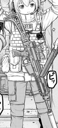 トト使用のものは専用マガジンのほか、4倍のACOG、その上に等倍のドットサイトを載せ、KAC製のフォアグリップ、サプレッサーを装着している。