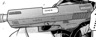 オーストリア製のポリマーフレーム拳銃。9x19mmパラベラム弾を使用する。
