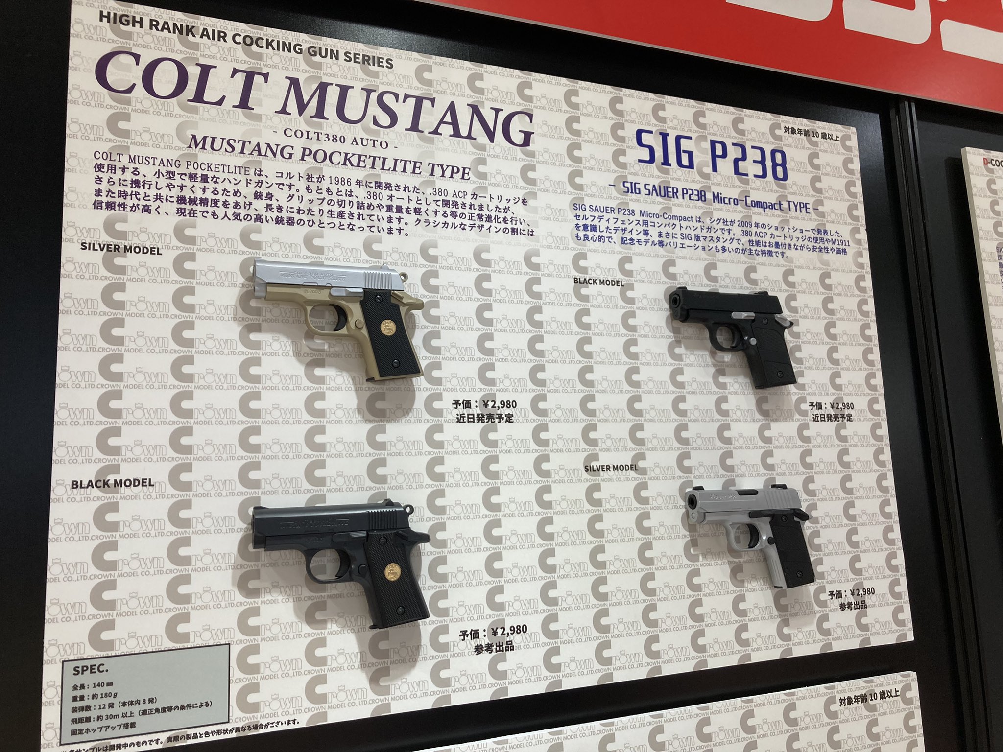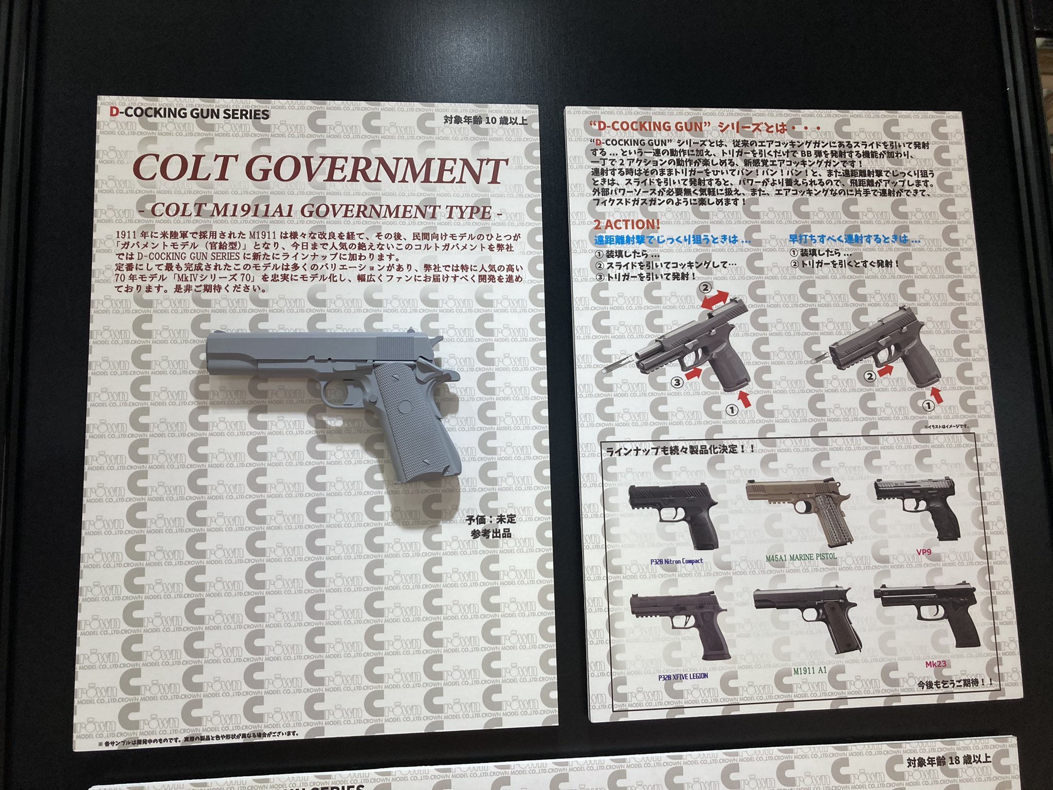 ちなみに2019年の時は先述のマスタングとP238がこのD-COCKINGガンシリーズとして展示されていたのですが、おそらく途中で設計変更して通常のエアコッキングガンとして仕上げたのでしょう。