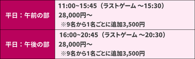 会員証なしレンタルあり 1人当たり ¥7,500(4,000+1,000+2,500)
