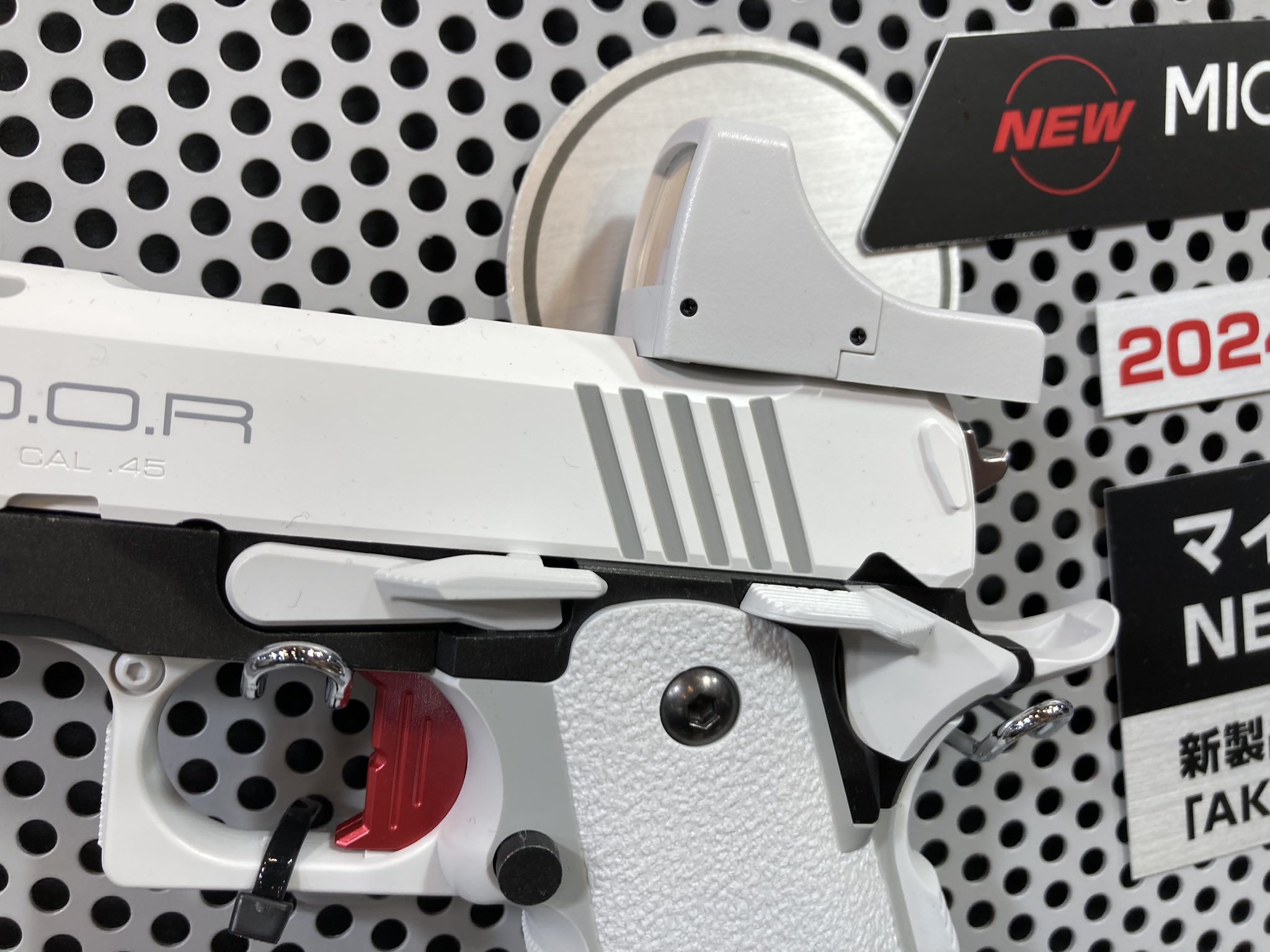 白もベタ塗りではなく、セレーションの溝やグリップのフチ取り等にグレーが織り交ぜられており、中々立体的な仕上がり。元々多面的なデザインだったD.O.Rのスライドがよりサイバーなイメージと化しています。