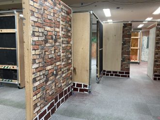 バリケードを組み合わせ、小部屋が連続するような形になっている部分も…