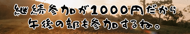 期間中は、午前の部から午後の部への継続参加料金が2000円→1000円に!?