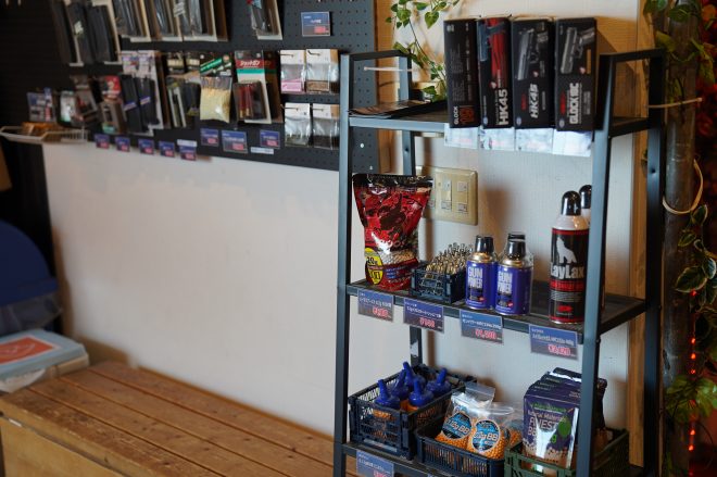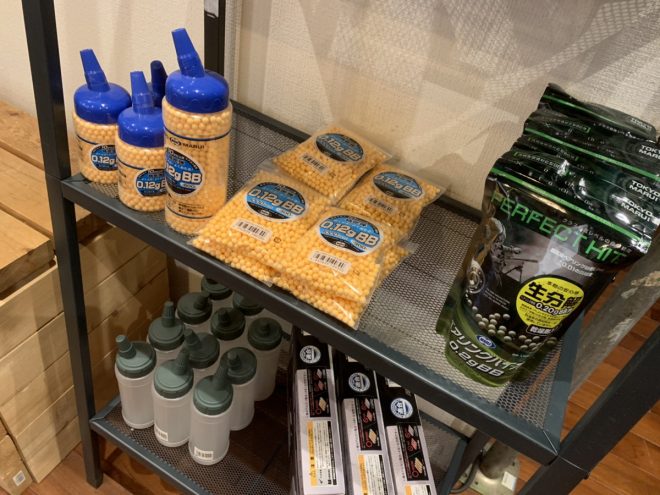 BB弾は持ち込み(0.20g以下)か店頭での購入となります。