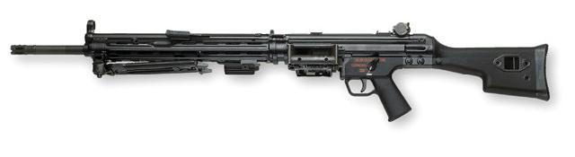 使用銃のHK21はドイツのH&K社が開発したアサルトライフル・G3をベースに機関銃化したもの。G3の高い精度と使い勝手はそのままに、アサルトライフルの延長のように使用が可能。