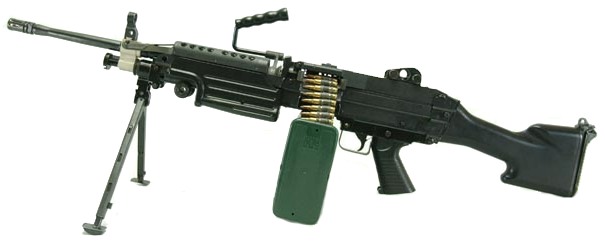 使用銃のM240Bは元々FNハースタル社が設計した機関銃・MAGをアメリカ軍向けに改修したもの。M14が使用するものと同じ7.62mm弾をベルトリンク給弾で連射する。