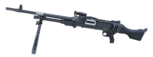 ソ連製の軽機関銃・PKのマイナーチェンジ版。ドラグノフと同じ弾丸をベルトリンク給弾で連射が可能で、特殊な給弾機構ながらその高い信頼性で今なお使用されている。